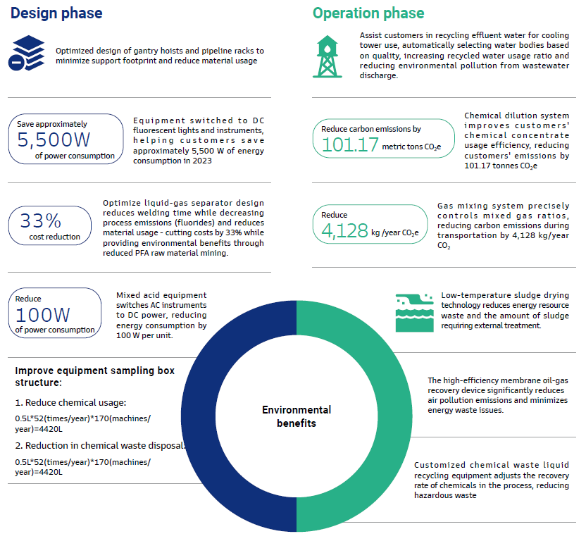 increase system supply performance by 4%-10% flow rate under different operating pressures, reduce welding time for manufacturing personnel, and reduce waste gas (fluoride) emissions during processing. Reducing material usage not only decreases cost expenditure by 33% but also provides environmental benefits by reducing PFA raw material mining.