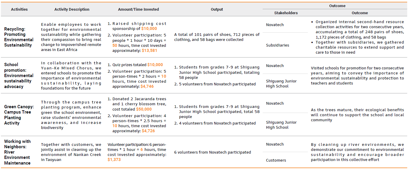 In 2024, Novatech once again initiated an internal secondhand resource collection campaign, responding to the "Step 30" project, with the participation of its subsidiaries.By extending the lifecycle of these resources, we aim to send these materials to rural East Africa, bringing change to impoverished rural areas in East Africa. In 2024, we successfully collected 101 pairs of shoes, 712 pieces of spring and summer clothing, and 58 backpacks. Over the past two years, we have accumulated a total of 248 pairs of shoes, 1,172 pieces of clothing, and 58 backpacks.