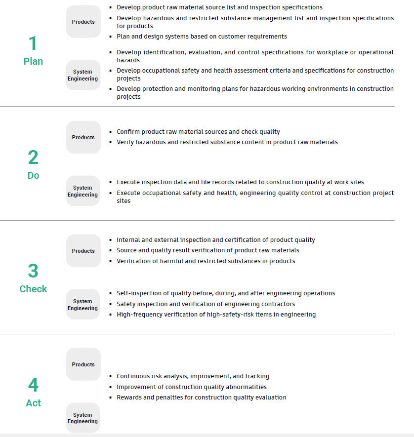 To ensure construction quality maintenance and assurance, Novatech has established a standardized internal quality inspection management system. Through cross-departmental collaboration between the Quality Control Department, Engineering Department, and supervision units, we oversee the construction quality across various projects. Management measures include quality management training before project execution, project management documentation during construction, on-site inspection records and deficiency tracking, analysis and review of construction quality issues, and cloud-based management of related documentation. These measures serve as key indicators for implementing and maintaining construction quality assurance within the Company. In 2024, Novatech’s products and services did not incur any penalties for health and safety violations.