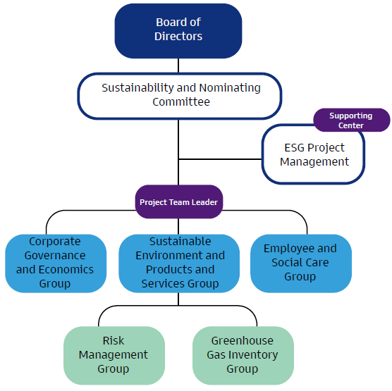 To ensure sound sustainability management, the Board of Directors has authorized the Sustainability and Nominating Committee to supervise the Company’s sustainable development practices and other Board-approved sustainability policies or systems and regularly report to the Board. The Sustainability and Nominating Committee, in addition to regularly monitoring the progress of each group’s operations based on reports from the Sustainability Promotion Group, also carries the mission of formulating the corporate sustainable development vision.While balancing company operational performance and