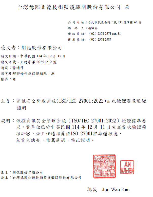 - 加入TW-ISAC電腦網路危機處理暨協調中心之資安情資分享組織,取得資安預警情資、資安威脅與弱點資訊。